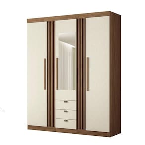 Feito em MDP, além de possui 4 portas, 4 gavetas, 5 prateleiras, 3 cabideiros e 2 espelhos.