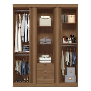 Feito em MDP, além de possui 4 portas, 4 gavetas, 5 prateleiras e 3 cabideiros.