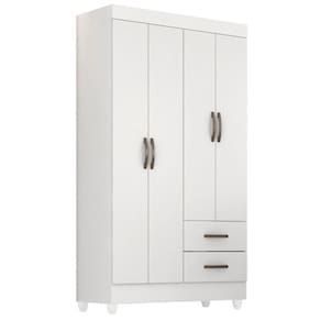 Feito em MDP. Contém 4 portas, 1 cabideiro em alumínio e 2 gavetas com corrediças metálicas facilitando a abertura e deslizamento.