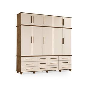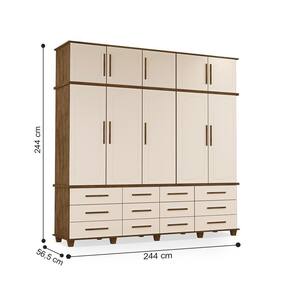 Esse Armário conta com um design clássico e simples, somando na decoração de seu quarto ou closet, com o espaço amplo para você se organizar. Ele conta 5 portas maiores, 12 gavetas, 2 prateleiras internas, varal para cabides e armário superior com 5 portas.