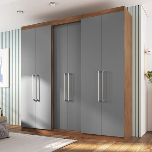 O Roupeiro Oxford 6 portas possui duas gavetas com ótimo espaço para organizar suas roupas e acessórios de forma prática e rápida. Produzido com material de excelente qualidade embelezando seu quarto e deixando um ambiente mais aconchegante em sua casa. Acabamento da Prateleira: Pintura UV Escala de Brilho da Prateleira: Semi-Brilho Acabamento da Gaveta: Pintura UV Escala de Brilho da Gaveta: Semi-Brilho Possui Organizador de Gaveta: Não Acabamento da Porta: Pintura UV Escala de Brilho da Porta: Semi-Brilho Material do Puxador da Porta: Alumínio Ambiente Principal: Quarto codigo_ean: 7900288124531 Complexidade da Montagem: Média: pode ser montado por mais de uma pessoa e/ou necessite de maior conhecimento para montagem Cor: Freijo/ Cinza Cor do Produto: Freijo/ Cinza Cor Flex: NÃO Cor Interna: Freijo Escala de Brilho: Semi-Brilho Espessura da Estrutura (mm): 12 mm Espessura das Portas (mm): 15 mm Espessura das Prateleiras (mm): 12 mm Espessura do Fundo (mm): 3 mm Espessura do Fundo das Gavetas (mm): 3 mm Gaveta com Chave: Não Guarda-Roupa Suporta Até (kg): 45 kg Itens Inclusos: 1 roupeiro, Kit Ferragem e Manual de Montagem Linha ou Coleção: Dormitorios Manual de Montagem e Instalação: https://product-hub-prd.madeiramadeira.com.br/632210414/documents/fce3215a-3f8e-44d5-a2a3-4f9bc205b09c2859667400017448228509556.pdf Marca: IRM Material da Gaveta: MDP Material da Porta: MDP Material da Prateleira: MDP Material Principal: MDP modular: Não Montagem Flex: NÃO Necessita Montagem: Sim Nicho com Cabideiro: Não Origem do Produto: Nacional Peso: 136 kg Peso Máximo por Gaveta: 3 kg Peso Máximo por Prateleira: 4 kg Possui Calceiros: 01 Possui Capelinha: Não Possui Espaço para Vestidos Longos: Sim Possui Espelho: Não Possui Espelho Interno: Não Possui Ganchos: Não Possui iluminação: Não Possui Nichos: Não Possui Painel de TV: Não Possui Penteadeira: Não Possui Pés: Não Possui Portas: Sim Possui Prateleiras: Sim Possui Sapateira: Não Produto Montado: Sim Quantidade de Cabideiros: 01 Cabideiro Quantidade de Gavetas: 02 Gavetas Quantidade de Prateleiras: 09 Prateleiras Recomendações de Uso, Manutenção e Limpeza: Para limpeza utilize pano macio levemente umedecido em água seguido de pano seco. Sistema de Montagem: Parafusos, cavilhas e cantoneiras Suporta Até (kg): 45 kg Tipo de Corrediça da Gaveta: Metálica Simples Tipo de Dobradiça/Corrediça da Porta: Metálica Tipo de Gaveta: Interna Tipo de Guarda-Roupa: Casal Tipo de Puxador da Gaveta: Não Possui Tipo de Puxador da Porta: Externo