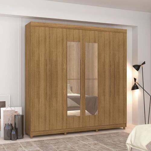 Produzido em MDP, o Guarda Roupa conta com 6 Portas, 2 Gavetas internas com corrediças metálicas, Cabideiro e calceiro em alumínio, Pés de madeiraopcional na montagem, Puxadores em MDF com design moderno.