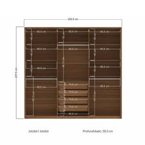 ALTURA DO PRODUTO (CM): 237,5 | ALTURA DO PRODUTO COM EMBALAGEM (CM): 50,3 | COMPRIMENTO DO PRODUTO (CM): 58,5 | COMPRIMENTO PRODUTO COM EMBALAGEM (CM): 253,3 | CONTEÚDO DA EMBALAGEM: 1 Guarda Roupa | CORES DO PRODUTO (FILTRO DE CORES): Jatobá | COR PREDOMINANTE: Jatobá | DESCRIÇÃO DO TAMANHO: 237,5x252,8x58,5 | ESTADO DE ORIGEM: PR | ESTILO: Clássico | GARANTIA DO FABRICANTE: 3 | INSTRUÇÕES/CUIDADOS: Limpar com flanela ou pano macio seco, não utilizar produtos abrasivos, desengordurantes, álcool ou solvente. Não expor o produto diretamente à luz solar e à umidade | LARGURA DO PRODUTO (CM): 252,8 | LARGURA PRODUTO COM EMBALAGEM (CM): 54,9 | MARCA: Casa H | MATERIAL PARA FILTRO: MDP | MATERIAL PRINCIPAL: MDP | PESO DO PRODUTO (KG): 209,9 | PESO PRODUTO COM EMBALAGEM (KG): 213,9 | POSSUI ESPELHOS: Não possui | PRODUTO: Guarda Roupa | PRODUTO PRECISA DE MONTAGEM?: Sim, a montagem é facil mas sugerimos a contratação de um montador para a montagem do produto. Não nos responsabilizamos por danos causados no ato da montagem. | QUANTIDADE DE GAVETAS: 4 | QUANTIDADE DE PORTAS: 6 | QUANTIDADES DE CAIXAS DE EMBALAGEM: 4 | TIPO DE GUARDA ROUPA: Casal