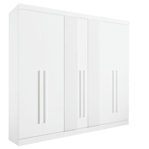 Roupeiro MDF Produzido com Chapa de 15mm e 25mm; Acabamento externo pintura UV Escala de brilho alto brilho Quantidade de Gavetas 6 Material da gaveta MDF Corrediças da gaveta telescópica Material do puxador da gaveta alumínio Profundida da gaveta 40 cm Abertura total da gaveta Sim Peso máximo por gaveta 5 Kg Numero de portas 6 Material do puxador das portas madeira de prateleiras 8 Material das prateleiras MDF Peso máximo das prateleiras 5 kg s de cabideiros 3