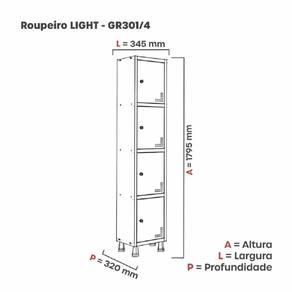 Armário Roupeiro de Aço totalmente montável, dispensa a utilização de parafusos, estrutura em chapas #24 e #26 (0,60mm e 0,45mm) conta com uma porta com estampos circulares em formação triangular para ventilação, sistema de fechamento de varão de 3 pontos, através de pitão para cadeado. Em conformidade com as normas NR17. Acabamento da Porta: Pintura Ambiente Principal: Escritório Complexidade da Montagem: Média: pode ser montado por mais de uma pessoa e/ou necessite de maior conhecimento para montagem Cor: Cinza/Preto Cor do Produto: Cinza/Preto Cor Interna: Cinza/Preto Escala de Brilho: Semi-Fosco Escala de Brilho da Porta: Semi-Brilho Itens Inclusos: 1 Armário e Manual de Montagem. Linha ou Coleção: Aço Manual de Montagem e Instalação: https://product-hub-prd.madeiramadeira.com.br/931515/documents/25f6137f-6d24-4bb0-839d-4fc709b973f20133Roupeiro20Linha20Light.pdf Material da Porta: Aço Material do Puxador da Porta: Poliestireno Material dos Pés: Polipropileno Material Principal: Aço Necessita Montagem: Sim Origem do Produto: Nacional Pés Reguláveis: Sim Peso: 11,967 kg Possui Espelho: Não Possui Pés: 04 Possui Portas: 04 Possui Prateleiras: Não Recomendações de Uso, Manutenção e Limpeza: Utilizar um pano levemente umedecido com água, para finalizar utilizar um pano seco. Sapatas Niveladoras: Sim Sistema de Montagem: Parafuso Suporta Até (kg): 20 kg Tipo de Dobradiça/Corrediça da Porta: Aço Tipo de Puxador da Porta: Externo