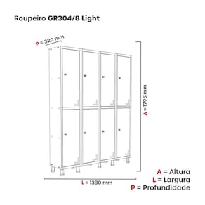 8 Portas: Amplo espaço interno com 4 grandes compartimentos, ideal para quem precisa de um roupeiro funcional e com grande capacidade de armazenamento.