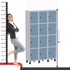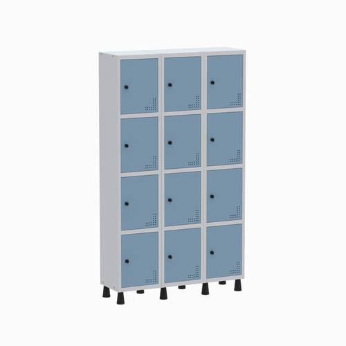 Com doze portas individuais e sistema de ventilação, o roupeiro garante melhor circulação de ar, evitando odores e proporcionando mais conforto ao usuário. Seu design funcional é perfeito para vestiários de empresas, academias, comércios, escritórios e ambientes que exigem armazenamento seguro e organizado de objetos pessoais.