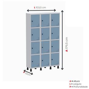 Roupeiro Aço Linha Light 12 Portas – GR302/12 Cinza/Azul Dali -