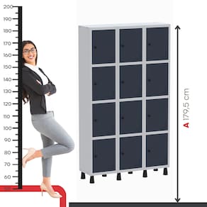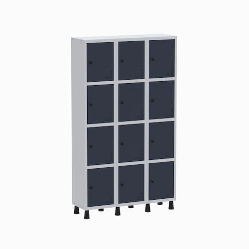 Com doze portas individuais e sistema de ventilação, o roupeiro garante melhor circulação de ar, evitando odores e proporcionando mais conforto ao usuário. Seu design funcional é perfeito para vestiários de empresas, academias, comércios, escritórios e ambientes que exigem armazenamento seguro e organizado de objetos pessoais.