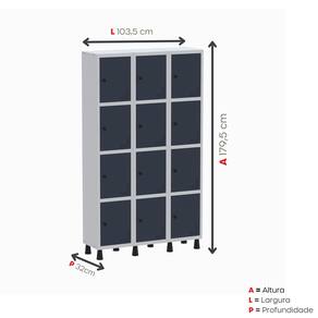 Roupeiro Aço Linha Light 12 Portas – GR302/12 Cinza/Azul Delrei -