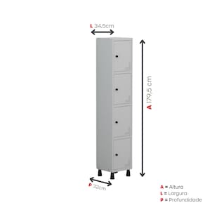Com quatro portas individuais e sistema de ventilação, o roupeiro garante melhor circulação de ar, evitando odores e proporcionando mais conforto ao usuário. Seu design funcional é perfeito para vestiários de empresas, academias, comércios, escritórios e ambientes que exigem armazenamento seguro e organizado de objetos pessoais.