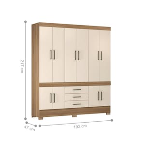 Esse guarda roupa traz um design com excelente espaço interno e boa distribuição para acomodação de roupas e objetos. Conta divisões e compartimentos bem distribuídos, oferecendo compartimentos exclusivos para vários pares de sapatos, maleiro espaçoso e prateleira.