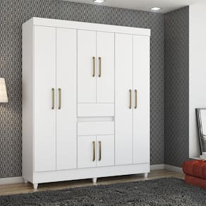 Produzido em MDP. Acompanha cabideiros em madeira, puxadores em plástico ABS na cor bronze, pés em PVC