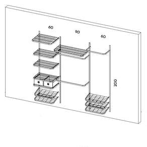 Este modelo é recomendado para closets solteiro ou casal. O trilho graduado contribui para o fácil deslocamento de altura dos cabideiros ou mesmo a remoção de um deles em caso de vestidos ou casacos longos. As caixas organizadoras são um complemento para a acomadação de langeries, meias, acessórios de inverno, praia ou fitness. Adicione mais dessas se precisar.