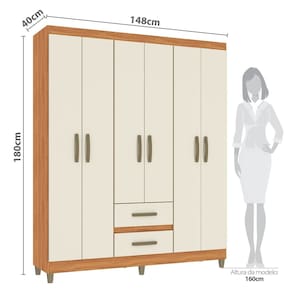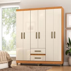 O roupeiro Coimbra é ideal para você que busca praticidade e beleza na organização dos pertences do seu dormitório, mas priorizando ter um excelente custo-benefício na compra! Possui 6 portas, sendo 4 maiores e 2 centrais menores, além de 2 gavetas externas. É um produto com ótimo aproveitamento de espaço interno, contando com prateleira e cabideiro. As dobradiças são metálicas e os trilhos das gavetas são corrediças telescópicas. O interno na cor linho é um charme à parte! O grande diferencial é o Acabamento em Pintura UV de última tecnologia, o que garante um acabamento impecável e alta durabilidade. Parabéns, você acaba de encontrar o produto que faltava no seu lar! Aproveite e adquira agora mesmo esse maravilhoso guarda-roupas e mantenha seu quarto bonito e organizado! Acabamento da Prateleira: Pintura UV Escala de Brilho da Prateleira: Semi-Brilho Possui Cabideiros: Sim Acabamento da Gaveta: Pintura UV Escala de Brilho da Gaveta: Brilhante Material do Puxador da Gaveta: Plástico Possui Organizador de Gaveta: Não Acabamento da Porta: Pintura UV Escala de Brilho da Porta: Brilhante Altura dos Pés: 7 cm Altura Máxima dos Pés: 7.0000 Ambiente Principal: Quarto codigo_ean: 7900288057907 Complexidade da Montagem: Baixa: pode ser montado por uma pessoa sozinha Cor: Cinamomo/Off White Cor do Produto: Cinamomo/Off White Cor do Puxador: Bronze Cor Interna: Linho Escala de Brilho: Brilhante Espessura da Estrutura (mm): 12 mm Espessura das Portas (mm): 12 mm Espessura das Prateleiras (mm): 12 mm Espessura do Fundo (mm): 3 mm Espessura do Fundo das Gavetas (mm): 3 mm Gaveta com Chave: Não Guarda-Roupa Suporta Até (kg): 70 kg Informações Complementares: Acabamento Pintura UV, Caixa e frentes 12mm, Interno cor linho, pés e puxadores cor bronze, corrediças telescópicas Itens Inclusos: Móvel, acessórios, manual de montagem Linha ou Coleção: Dormitórios Manual de Montagem e Instalação: https://product-hub-prd.madeiramadeira.com.br/977118/documents/51351493-7232-4f27-988a-2fc3d600621a2672113406517388487104944.pdf Marca: Fellicci Material da Gaveta: MDP Material da Porta: MDP Material da Prateleira: MDP Material dos Pés: Plástico Material Principal: MDP modular: Não Necessita Montagem: Sim Origem do Produto: Nacional Peso: 62,72 kg Peso Máximo por Gaveta: 3 kg Peso Máximo por Prateleira: 10 kg Possui Calceiros: Não Possui Espelho: Não Possui Pés: 06 Possui Portas: Sim Possui Prateleiras: Sim Produto Montado: Sim Quantidade de Cabideiros: 01 Cabideiro Quantidade de Gavetas: 02 Gavetas Quantidade de Prateleiras: 01 Prateleira Recomendações de Uso, Manutenção e Limpeza: Pano levemente úmido Sistema de Montagem: parafusos Suporta Até (kg): 70 kg Tipo de Corrediça da Gaveta: Metálica Telescópica Tipo de Dobradiça/Corrediça da Porta: Metálica Tipo de Gaveta: Externa Tipo de Guarda-Roupa: Casal Tipo de Puxador da Gaveta: Externo Tipo de Puxador da Porta: Externo