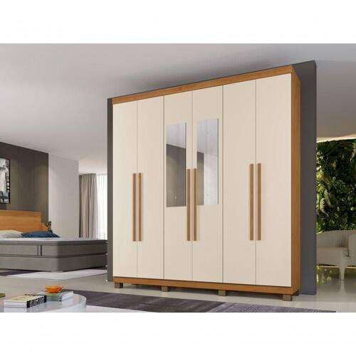 Roupeiro Com Espelho Milão 6 Portas 3 Gavetas Benetil Cor:cinamomo/off