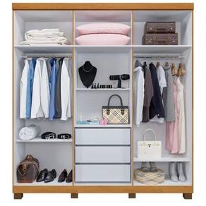 ROUPEIRO MILÃO É PRODUZIDO EM CHAPA DE 15 MM QUE GARANTE ROBUSTES E MAIOR VIDA ÚTIL , CONTEM 6 PORTAS, 7 PRATELEIRAS, 3 GAVETAS COM CORREDIÇAS TELESCOPICA, CABIDEIRO EM ALUMINIO, PES INCLUSO NO PRODUTO E PUXADORES NA COR , ÓTIMO CUSTO BENEFICIO.