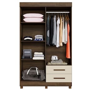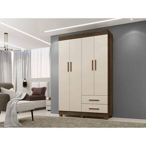 O Roupeiro Copacabana quatro portas é o móvel ideal para organizar seu quarto e deixá-lo ainda mais prático! Com design clássico, ele possui elementos que dão a ele um toque de modernidade. O design clean deixa o ambiente mais aconchegante. A parte interna ampla possui várias prateleiras, possibilitando o armazenamento de cobertores, travesseiros e outros acessórios. Conta com cabideiro em alumínio, o que garante um suporte para maior peso. As gavetas são externas oferecendo mais espaço e comodidade para organizar as coisas. É a solução para pequenos espaços e perfeito para deixar o quarto mais prático e bonito!Características:Linha: Roupeiro CopacabanaEstilo: ModernoOrigem do produto: NacionalMatéria-prima da estrutura: MDPAmbiente principal: QuartoDe canto: NãoNecessita montagem: SimPossui espelho externo: NãoPossui espelho interno: NãoPossui pés: Sim, 6.Altura dos pés: 5cmMaterial dos pés: PVCPossui portas: SimQuantidade de portas: 4Tipo de portas: BaterTipo de puxador da porta: ExternoMatéria-prima dos puxadores: PVCPossui prateleiras: SimQuantidade de prateleiras: 4Possui gavetas: SimQuantidade de gavetas: 2Tipo de gaveta: ExternaTipo de corrediça da gaveta: TelescópicaGaveta com chave: NãoPossui cabideiro: SimMaterial do cabideiro: AlumínioDimensões do produto montado:Altura: 210 cmLargura: 114 cmProfundidade: 43 cmPeso: 82kgGarantia do fornecedor: 3 mesesRecomendações de uso/manutenção: Limpar com flanela limpa e seca. Não usar produtos abrasivos.