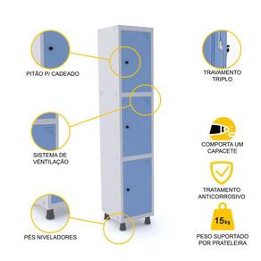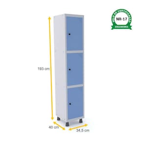 ROUPEIRO DE AÇO 1M 03 PORTAS PITÃO PANDIN - CINZA/AZUL DALÍ