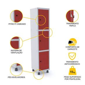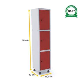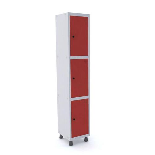 ROUPEIRO DE AÇO 1M 03 PORTAS PITÃO PANDIN - CINZA/VERMELHO