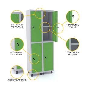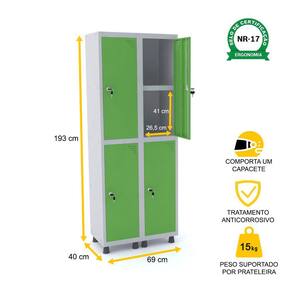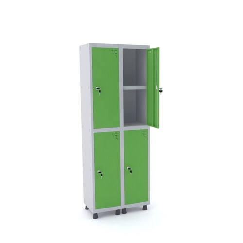ROUPEIRO DE AÇO 2M 04 PORTAS C/ PRAT. FECHADURA PANDIN - CINZA/VERDE