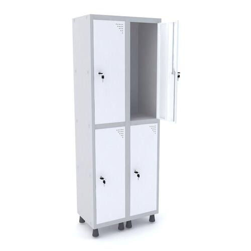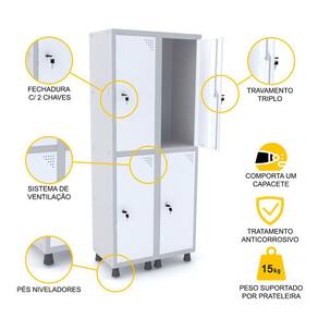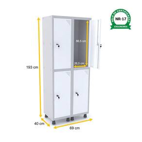 ROUPEIRO DE AÇO 2M 04 PORTAS FECHADURA PANDIN - CINZA/BRANCO
