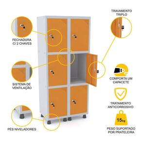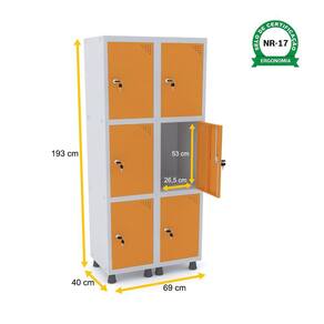 ROUPEIRO DE AÇO 2M 06 PORTAS FECHADURA PANDIN - CINZA/LARANJA