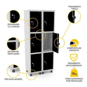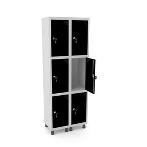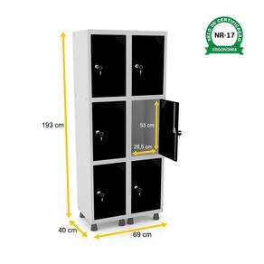 ROUPEIRO DE AÇO 2M 06 PORTAS FECHADURA PANDIN - CINZA/PRETO