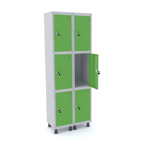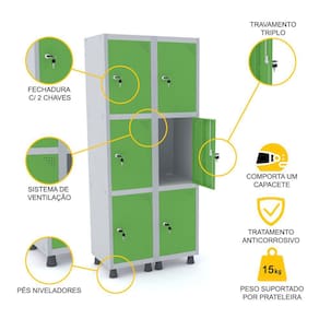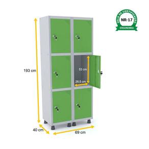 ROUPEIRO DE AÇO 2M 06 PORTAS FECHADURA PANDIN - CINZA/VERDE