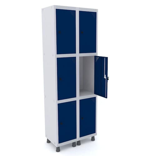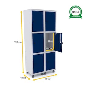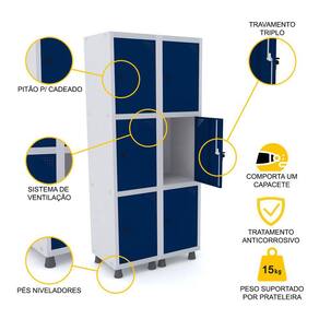 ROUPEIRO DE AÇO 2M 06 PORTAS PITÃO PANDIN - CINZA/AZUL DEL REY