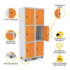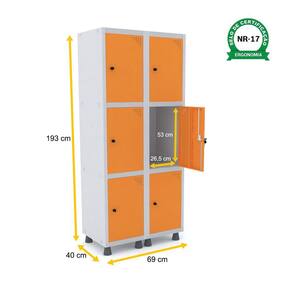 ROUPEIRO DE AÇO 2M 06 PORTAS PITÃO PANDIN - CINZA/LARANJA