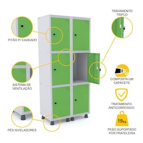 ROUPEIRO DE AÇO 2M 06 PORTAS PITÃO PANDIN - CINZA/VERDE