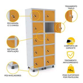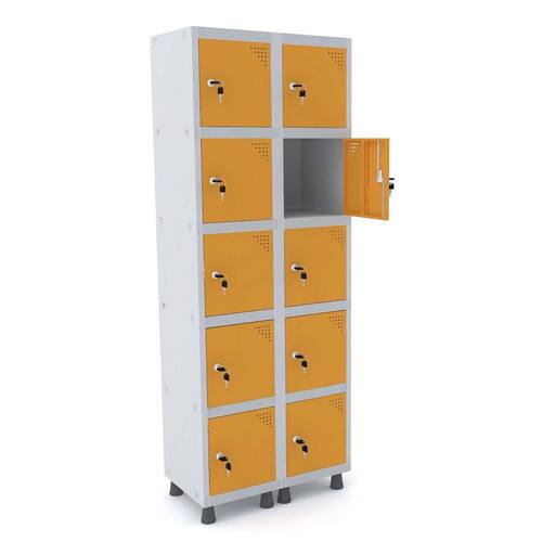 ROUPEIRO DE AÇO 2M 10 PORTAS FECHADURA PANDIN - CINZA/LARANJA