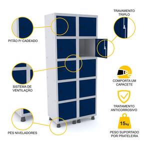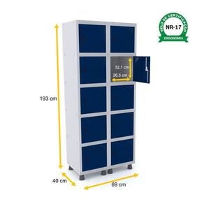 ROUPEIRO DE AÇO 2M 10 PORTAS PITÃO PANDIN - CINZA/AZUL DEL REY