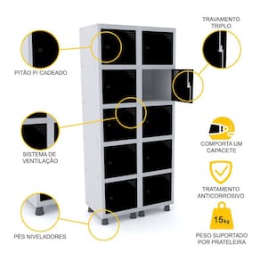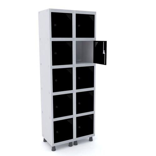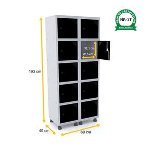 ROUPEIRO DE AÇO 2M 10 PORTAS PITÃO PANDIN - CINZA/PRETO