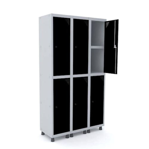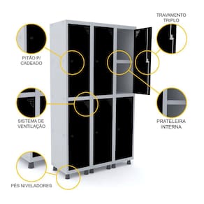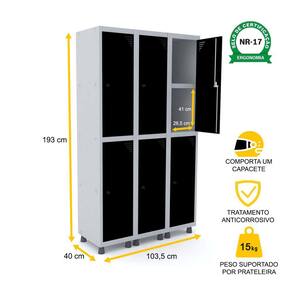 ROUPEIRO DE AÇO 3M 06 PORTAS C/ PRAT. PITÃO PANDIN - CINZA/PRETO