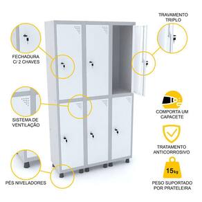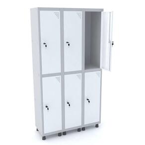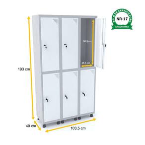 ROUPEIRO DE AÇO 3M 06 PORTAS FECHADURA PANDIN - CINZA/BRANCO