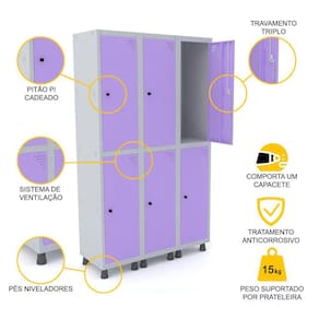 ROUPEIRO DE AÇO 3M 06 PORTAS PITÃO PANDIN - CINZA/LILÁS