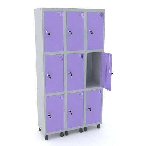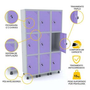 ROUPEIRO DE AÇO 3M 09 PORTAS FECHADURA PANDIN - CINZA/LILÁS