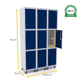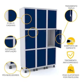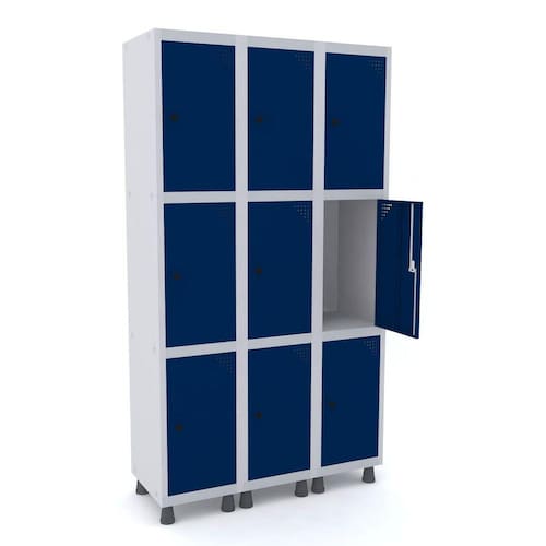 ROUPEIRO DE AÇO 3M 09 PORTAS PITÃO PANDIN - CINZA/AZUL DEL REY