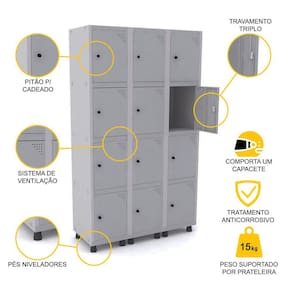 ROUPEIRO DE AÇO 3M 12 PORTAS PITÃO PANDIN - CINZA