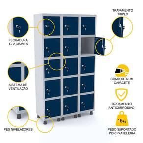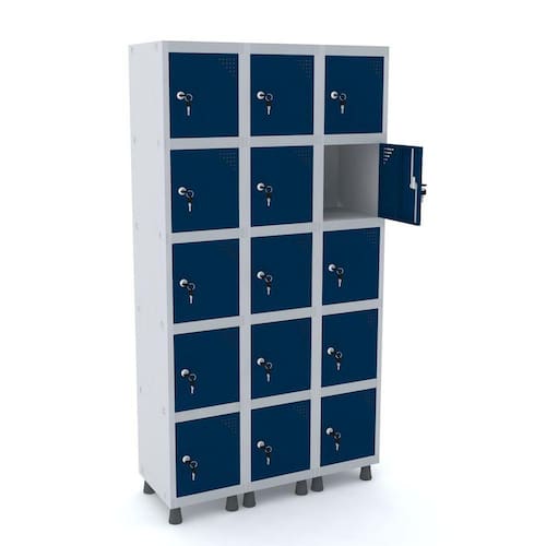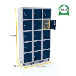 ROUPEIRO DE AÇO 3M 15 PORTAS FECHADURA PANDIN - CINZA/AZUL DEL REY