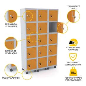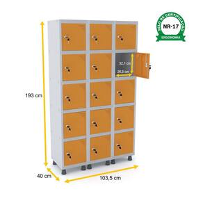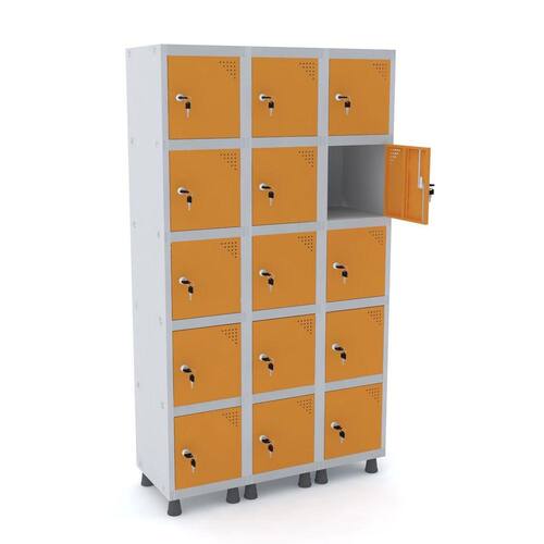 ROUPEIRO DE AÇO 3M 15 PORTAS FECHADURA PANDIN - CINZA/LARANJA