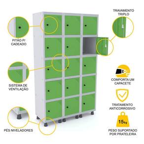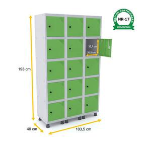 ROUPEIRO DE AÇO 3M 15 PORTAS PITÃO PANDIN - CINZA/VERDE
