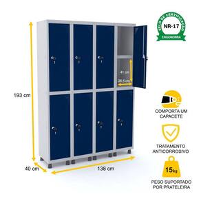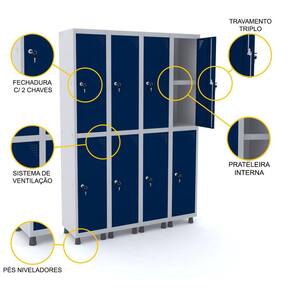 ROUPEIRO DE AÇO 4M 08 PORTAS C/ PRAT. FECHADURA PANDIN - CINZA/AZUL DEL REY