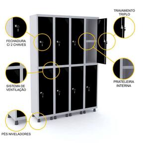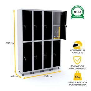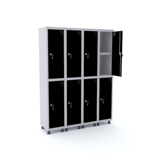 ROUPEIRO DE AÇO 4M 08 PORTAS C/ PRAT. FECHADURA PANDIN - CINZA/PRETO