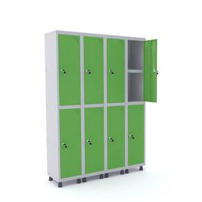 ROUPEIRO DE AÇO 4M 08 PORTAS C/ PRAT. FECHADURA PANDIN - CINZA/VERDE