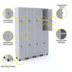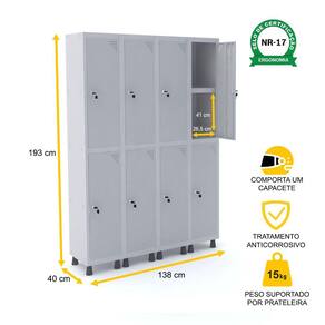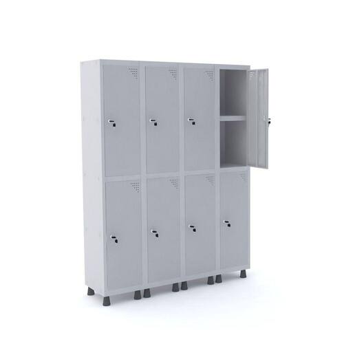 ROUPEIRO DE AÇO 4M 08 PORTAS C/ PRAT. FECHADURA PANDIN - CINZA