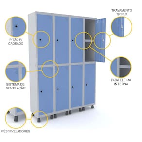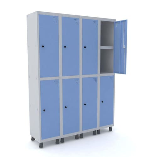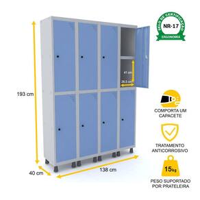 ROUPEIRO DE AÇO 4M 08 PORTAS C/ PRAT. PITÃO PANDIN - CINZA/AZUL DALÍ
