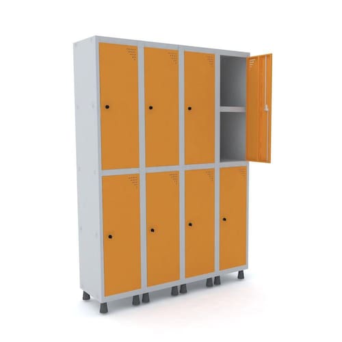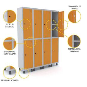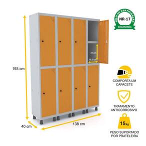 ROUPEIRO DE AÇO 4M 08 PORTAS C/ PRAT. PITÃO PANDIN - CINZA/LARANJA